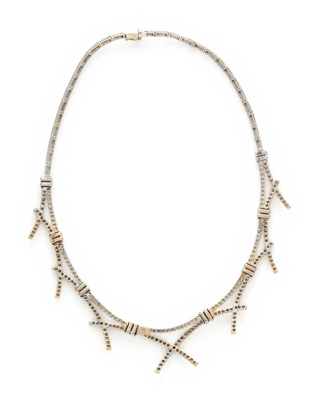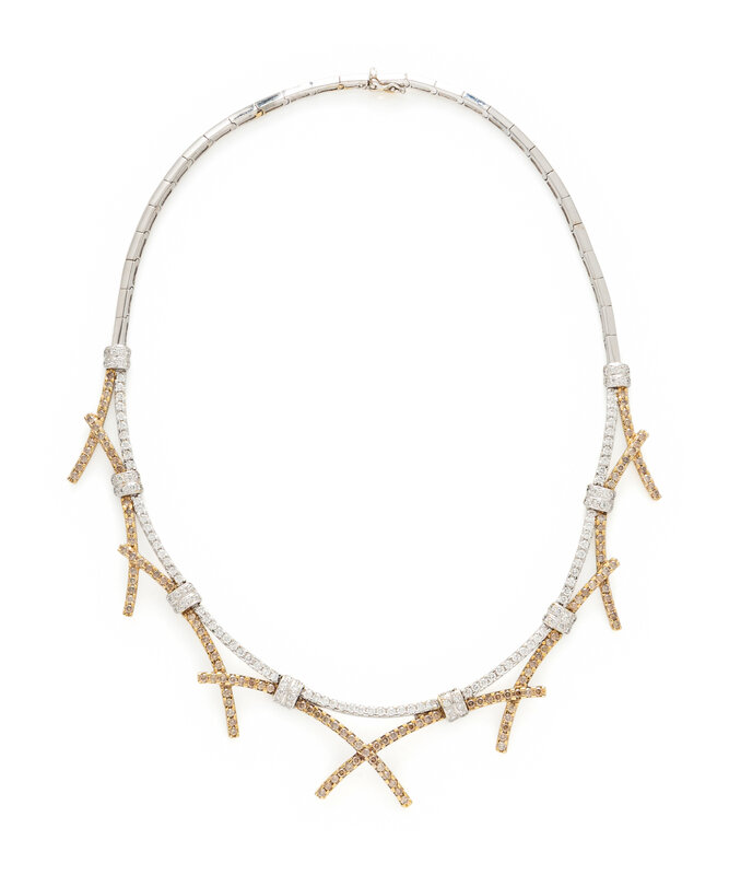 COLORED DIAMOND, DIAMOND, AND WHITE GOLD NECKLACE