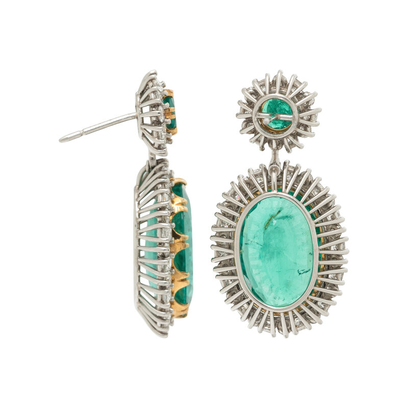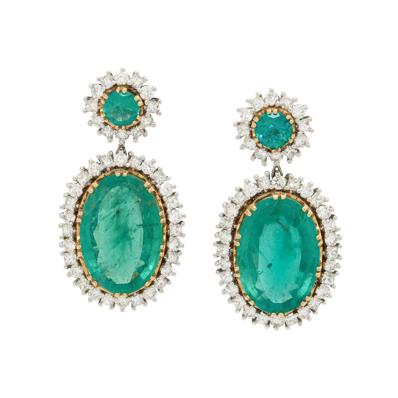 EMERALD AND DIAMOND PENDANT EARRINGS
