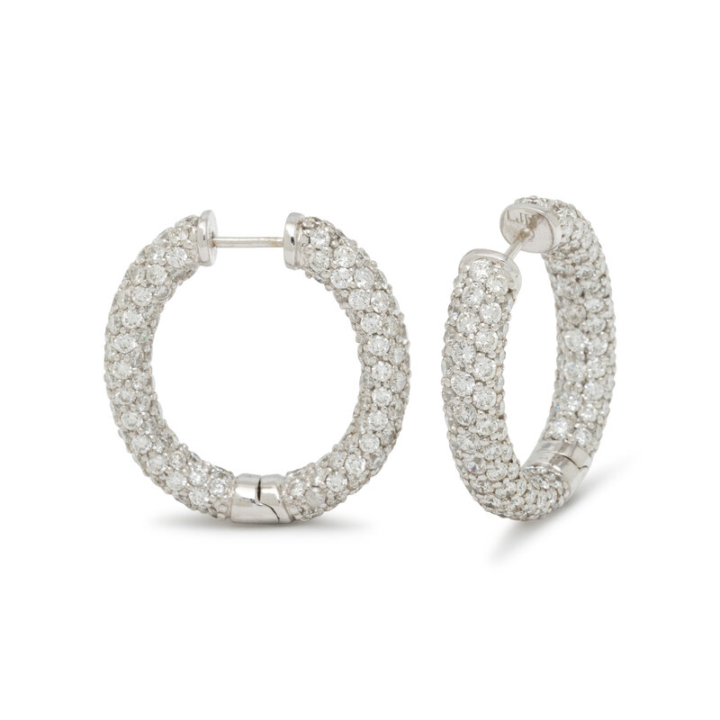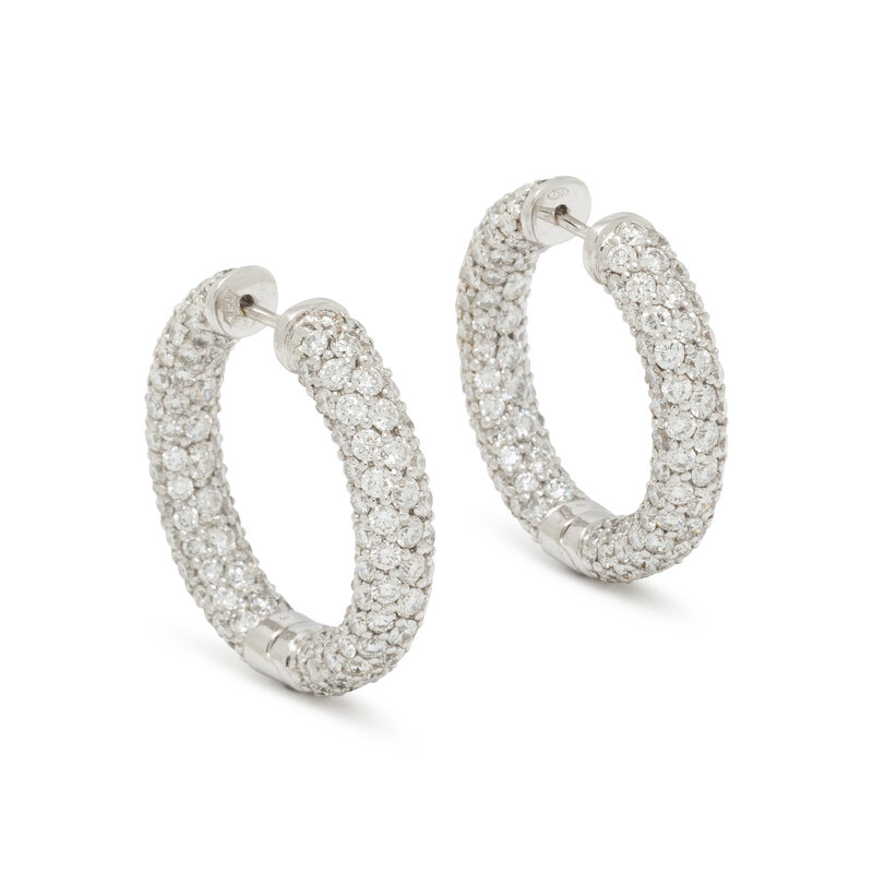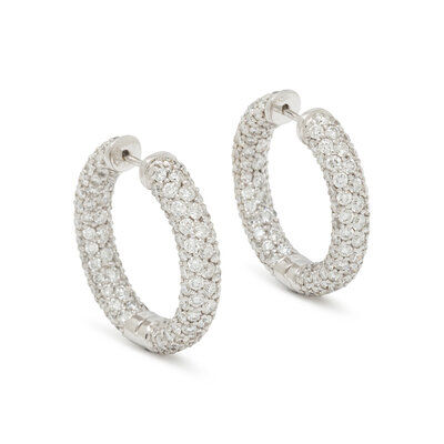 DIAMOND AND WHITE GOLD HOOP EARRINGS