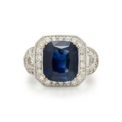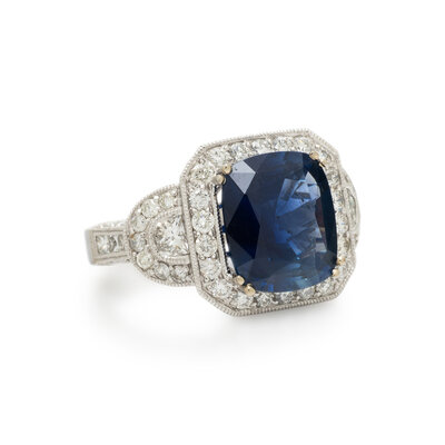 SAPPHIRE, DIAMOND, AND WHITE GOLD RING