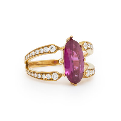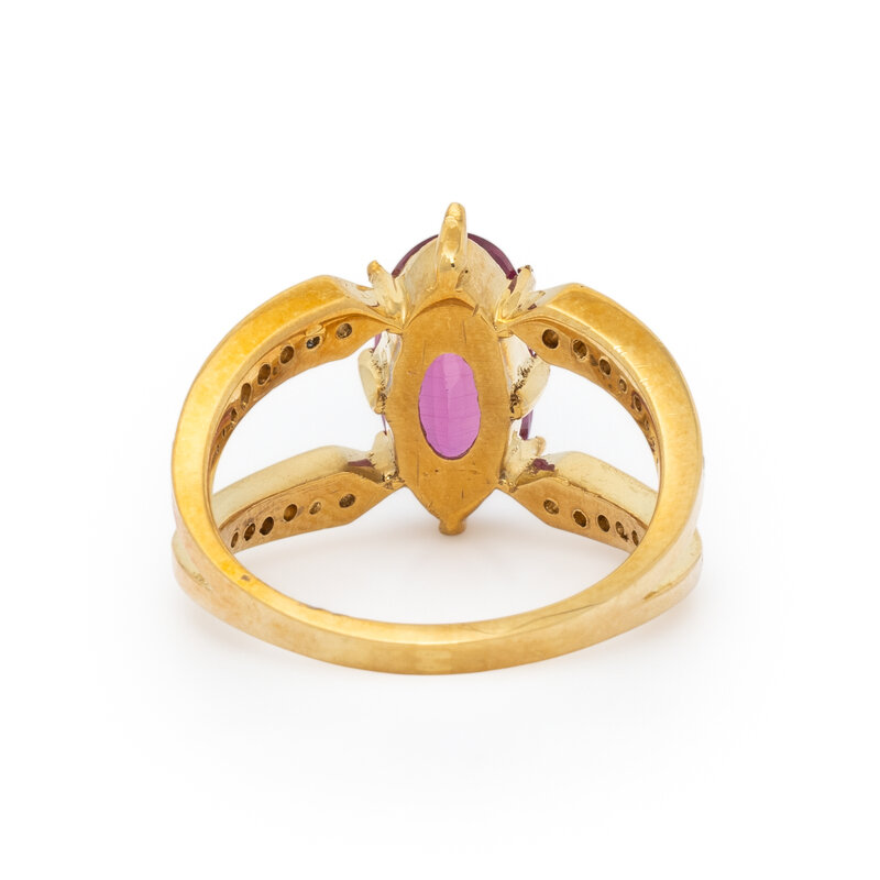 RUBY, DIAMOND, AND YELLOW GOLD RING