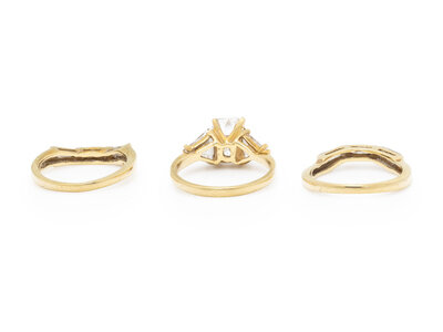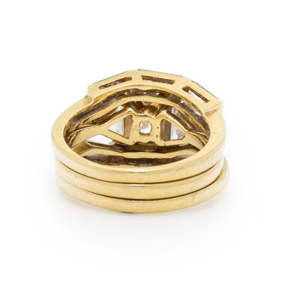 DIAMOND AND YELLOW GOLD RING WITH TWO GUARD RINGS