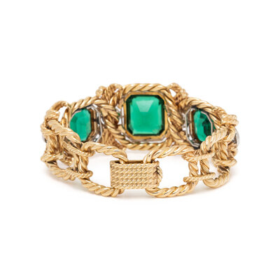 DAVID WEBB, YELLOW GOLD, DIAMOND AND GREEN GLASS BRACELET
