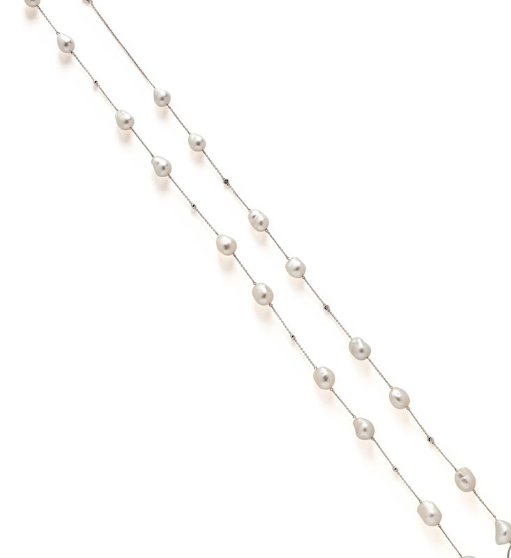 MIKIMOTO, BAROQUE CULTURED PEARL AND DIAMOND LONG CHAIN NECKLACE