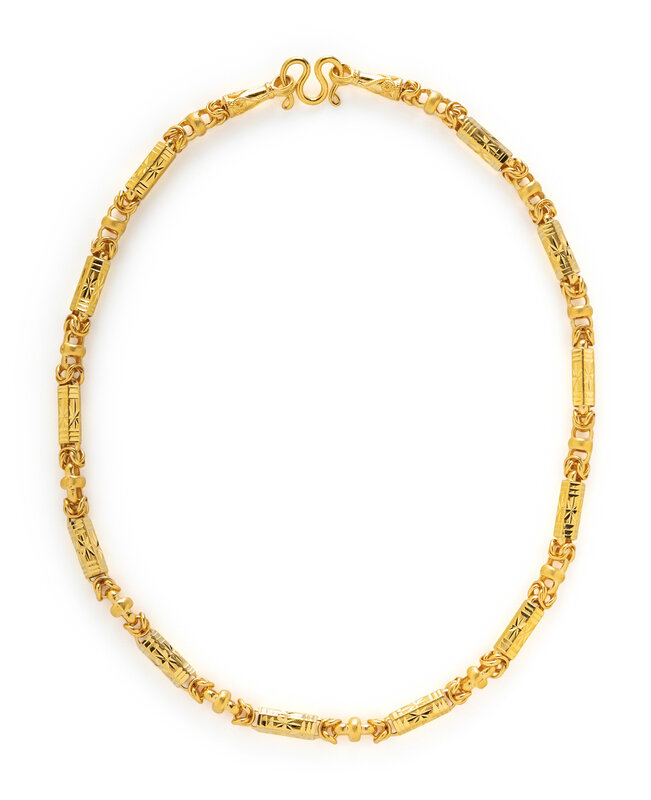 A HIGH KARAT YELLOW GOLD BYZANTINE FANCY LINK NECKLACE AND DIAMOND AND TOURMALINE CONVERTIBLE NECKLACE