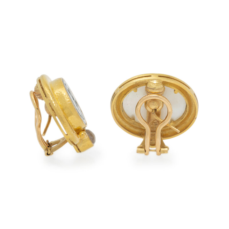 ELIZABETH LOCKE, 'DEMEL SPHINX' VENETIAN GLASS INTAGLIO EARRINGS