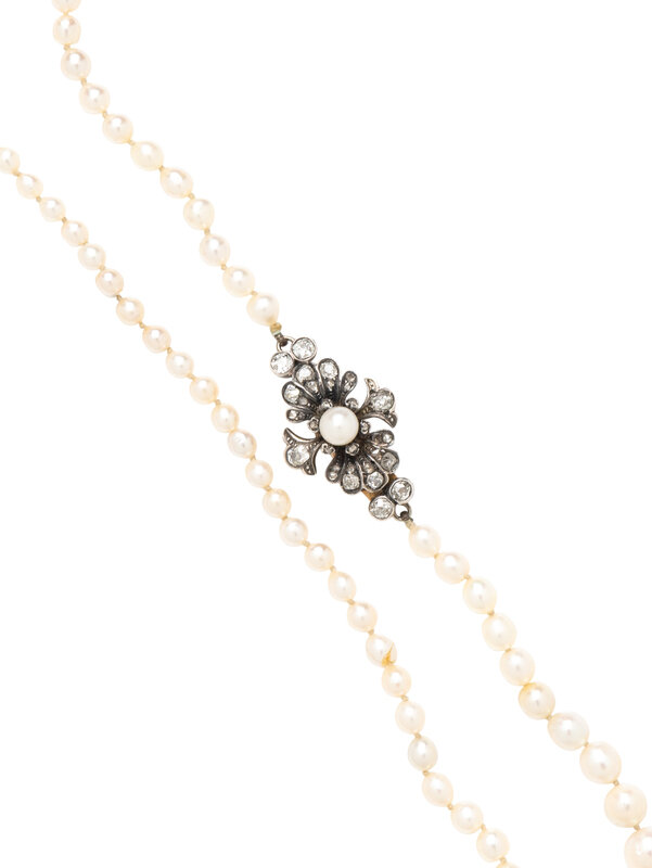 NATURAL AND CULTURED PEARL NECKLACE WITH SILVER-TOPPED GOLD AND DIAMOND CLASP
