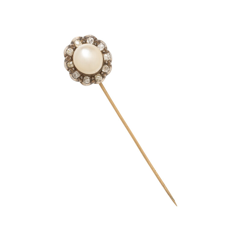 NATURAL PEARL AND DIAMOND STICK PIN
