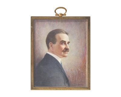 [Children's & Illustrated] [Baum, L. Frank] Quivey, Claude E. Original Portrait Miniature of L. Frank Baum