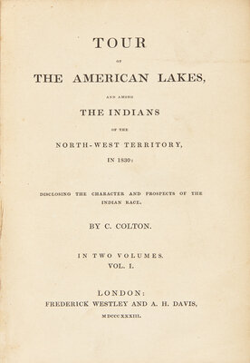 [Americana] Colton, C(alvin). Tour of the American Lakes, and Among the Indians of the North-west Territory, in 1830: Disclosing the Character and Prospects of the Indian Race