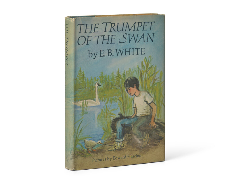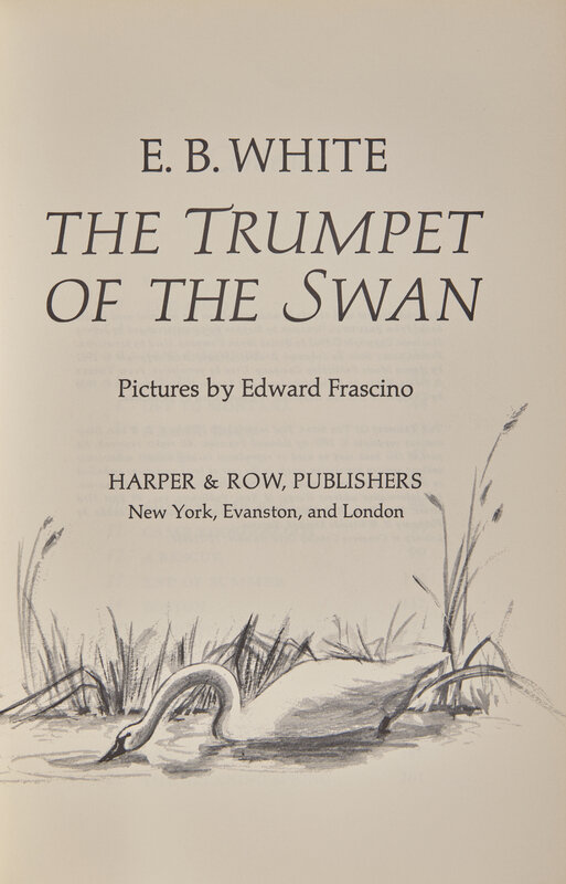 Lot includes an autograph letter, signed by Frascino, to Mr. Jeffrey C. Adams of Belvedere, California, dated January 20, 1995: "Dear Jeff: Herewith the drawing by E.B. White for 'The Trumpet of the Swan.' It didn't seem right to offer it for sale along with my illustrations for the book, and, as it is unsigned, how would one price it? As a collector of Mr. White's work I imagine you will get the most pleasure out of having it. Best wishes, Ed Frascino".