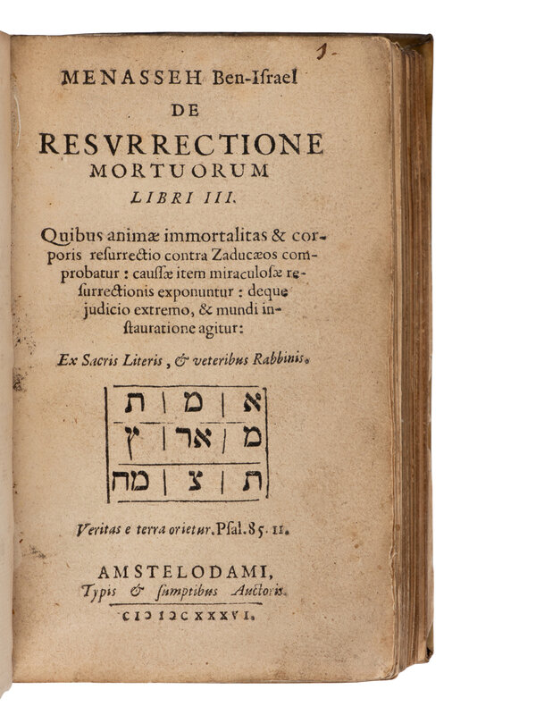 [Judaica] Ben-Israel, Menasseh. De Resurrectione Mortuorum Libri III