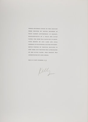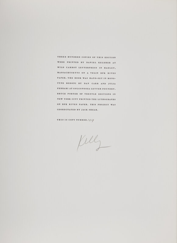 (New York): The Limited Editions Club, (1992). Limited edition, #109/375 numbered copies signed by illustrator Ellsworth Kelly. Folio. Illustrated with lithographs by Kelly. Publisher's full black niger, stamped in gilt; printed prospectus laid in; in original black cloth fall-down-back box. Original printed prospectus and translation laid in.