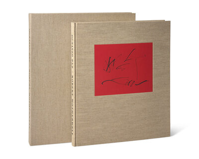 (New York): The Limited Editions Club, (2000). Limited edition, #490/750 numbered copies signed by Octavio Paz and illustrator Robert Motherwell (from a total edition of 820). Elephant folio. Text printed in Spanish and in English, in black and in red. Illustrated with 26 lithographs by Motherwell. Publisher's light grey linen, printed red and black cover label by Motherwell, stamped in black; in original matching light grey linen fall-down-back box.