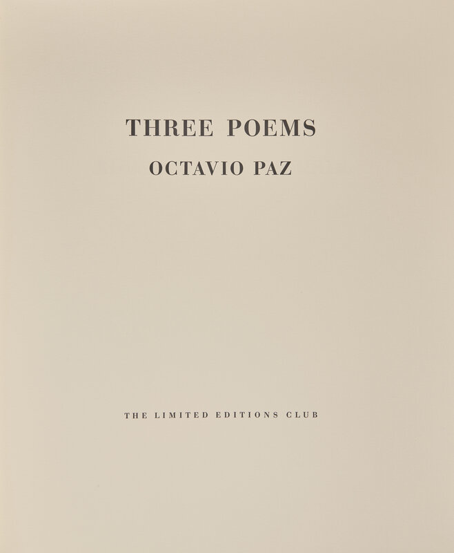 [Limited Editions Club] Paz, Octavio. Three Poems