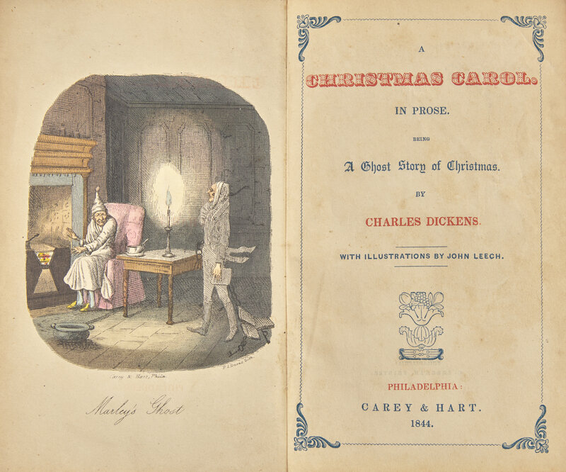 A stunning early American edition of Charles Dickens's classic Christmas story. While this edition has traditionally been considered the first American edition, Walter E. Smith, in his recent bibliography of the first American editions of Charles Dickens, now designates that to the New York Harper & Brothers edition. According to newspaper ads examined by Smith, their edition was published on January 24, 1844, while the Carey & Hart edition was published later that year, on April 19.