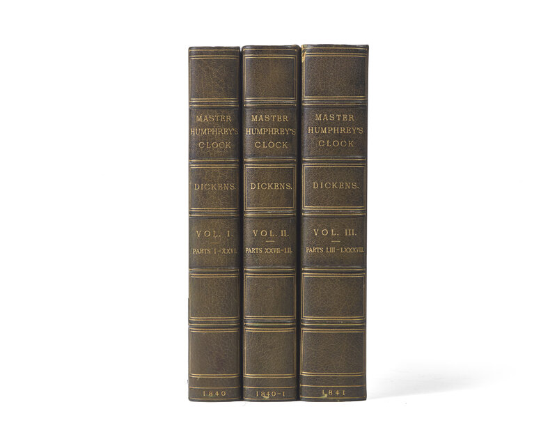 Handsome first edition in the original weekly parts including the first appearances of The Old Curiosity Shop and Barnaby Rudge. Master Humphrey's Clock was one of the first works Dickens introduced in weekly parts, and "of the four issues the weekly one is difficult to obtain in a clean condition and is therefore the costliest" (Eckel).