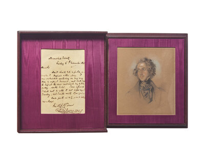 [Literature] [Dickens, Charles]. Taylor, Alfred Henry. Original Pencil and Wash Portrait, with an Autograph Letter, signed