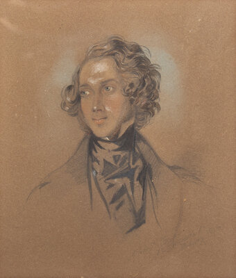 A fine and very early original half-length portrait of a young Charles Dickens, by English artist Alfred Henry Taylor (1810-68).