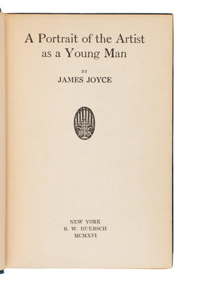 First edition of Joyce's first published novel, which first appeared in serial form in The Egoist, from February 1914 to September 1915. He began working on the novel in 1904, and it underwent a series of radical changes before its publication in 1916. “The prose moves forward in complexity from the child’s sensations at the beginning to the adolescent subtleties at the end,” and the novel’s modernism is apparent in its episodic format and concern with the consciousness of the protagonist (Connolly, The Modern Movement 26).