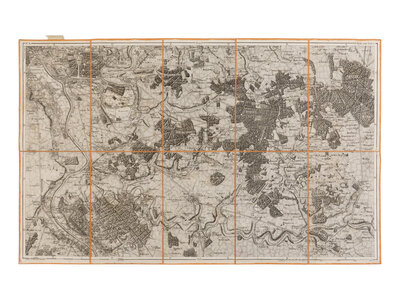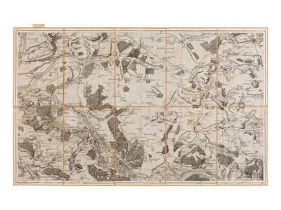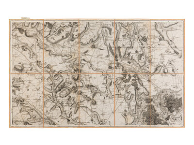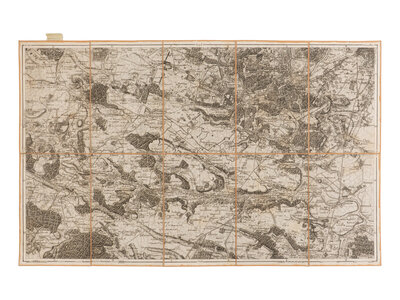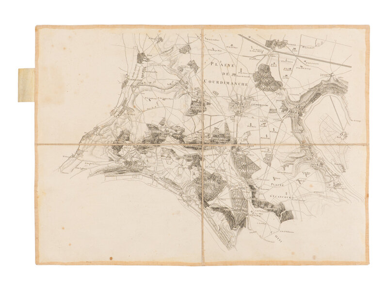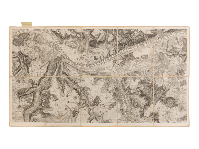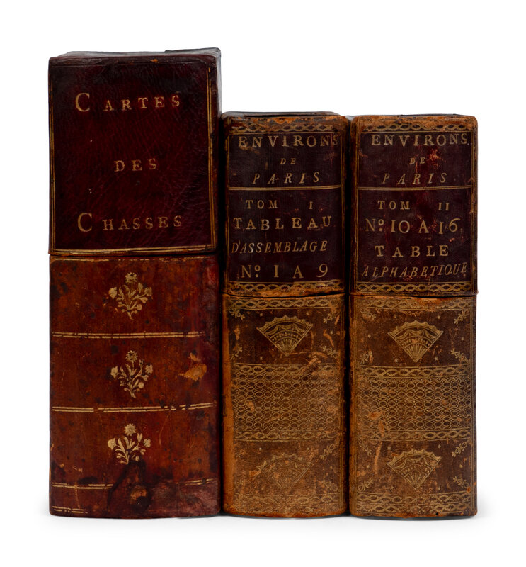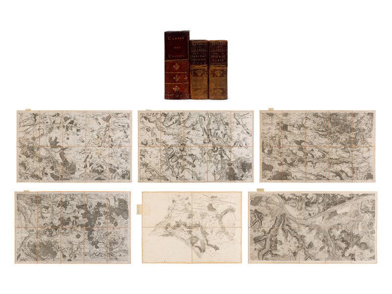 (Paris, ca. 1800). Comprising 13 folding maps of France, mounted on old linen, some spotting, toning; housed in contemporary mottled calf pull-off case with gilt morocco label, rubbing resulting in minor losses along extremities, cracking.