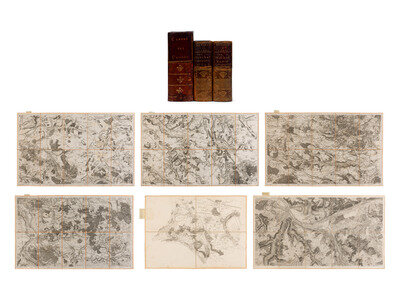 Paris: Charles Picquet, 1800. Comprising 16 folding maps of France, mounted on old linen; with additional assembly volume, spotting, toning; in two contemporary calf pull-off cases with gilt morocco labels, rubbing resulting in minor losses along extremities, cracking.