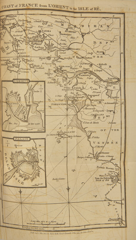 The engraved plates show portraits of naval officers, views of overseas ports and local scenes, charts of harbors and ship's battles, charts related to science and technology, including astronomy, and maps of various places, including France, Sweden, and Ceylon (Sri Lanka). Sold not subject to return.