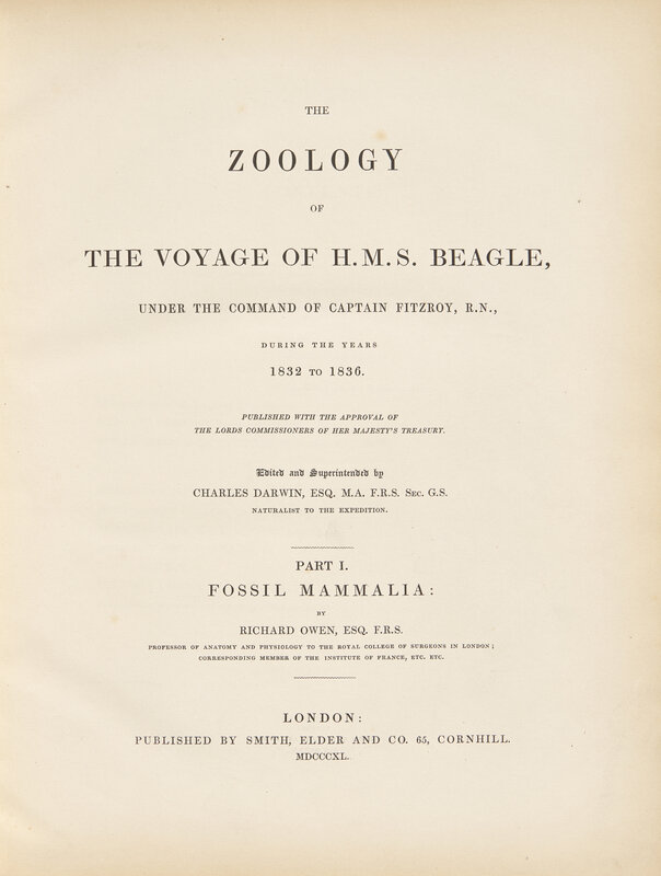 [Natural History] Darwin, Charles, and Richard Owen, and George R. Waterhouse. The Zoology of the Voyage of H.M.S. Beagle, Under the Command of Captain Fitzroy, R.N., During the Years 1832-1836...