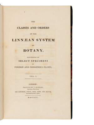 First edition, hand-colored issue. Duppa describes at length the taxonomic system first developed by Swedish botanist Carl Linnaeus. "This work is intended to be a complete illustration of the Linnaean system of Botany...This work was originally begun as an amusement, and it has gradually expanded in size" (Introduction). Includes a dictionary of botanical terms and a general index. The book was issued both colored and uncolored.
