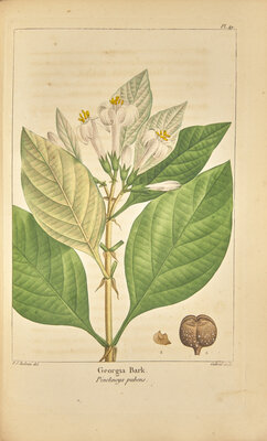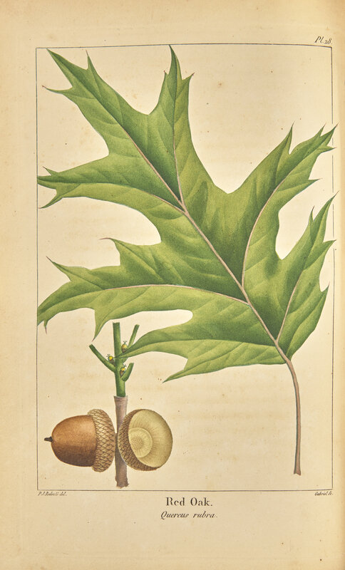 It was under this motivation that Maclure joined Robert Owen's struggling utopian community of New Harmony in Indiana in 1820, bringing with him his "Boatload of Knowledge” such a scientific equipment, a printing press, as well as scientists Thomas Say (1787-1834) and Charles Alexandre Lesueur (1778-1846). "Maclure supported their work in New Harmony and bought a small hand-press on which, between 1827 and 1843, were printed the monographic publications of Say and Lesueur as well as some of his own works and two by David Dale Owen, one of the sons of Robert Owen, who became a celebrated geologist. The most notable work to come off Maclure's press was the first American edition of François André Michaux's North American Sylva. Maclure had bought the remaining copies of the Paris edition himself, together with the original copper plates, while he was living in France in 1824." (MacPhail & Sutton, A Bibliography of the Natural History Works Printed at New Harmony, Indiana, 1827-1843, p. 300)