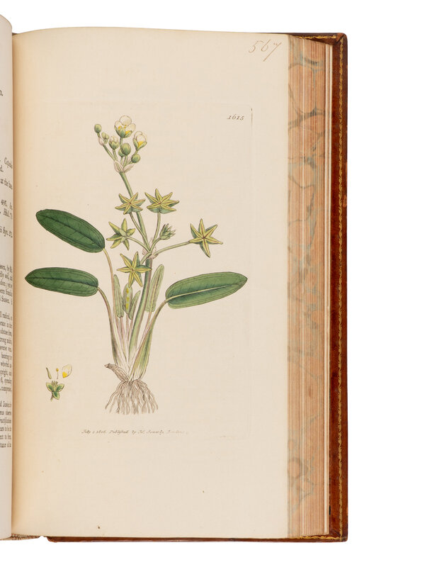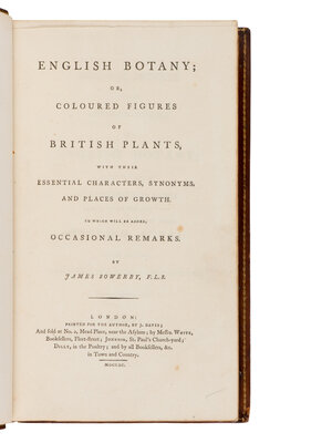 English Botany was conceived, illustrated, and published by James Sowerby with the assistance of Linnean Society founder Sir James Edward Smith. Smith wrote the technical descriptions of each plant specimen, but declined to be named as co-author--due to Sowerby's lower social status--until after the work became a success. "English Botany is of value even to the present day as a work of reference, and as an illustrated flora of our country it has never been surpassed" (Henrey, p. 143).