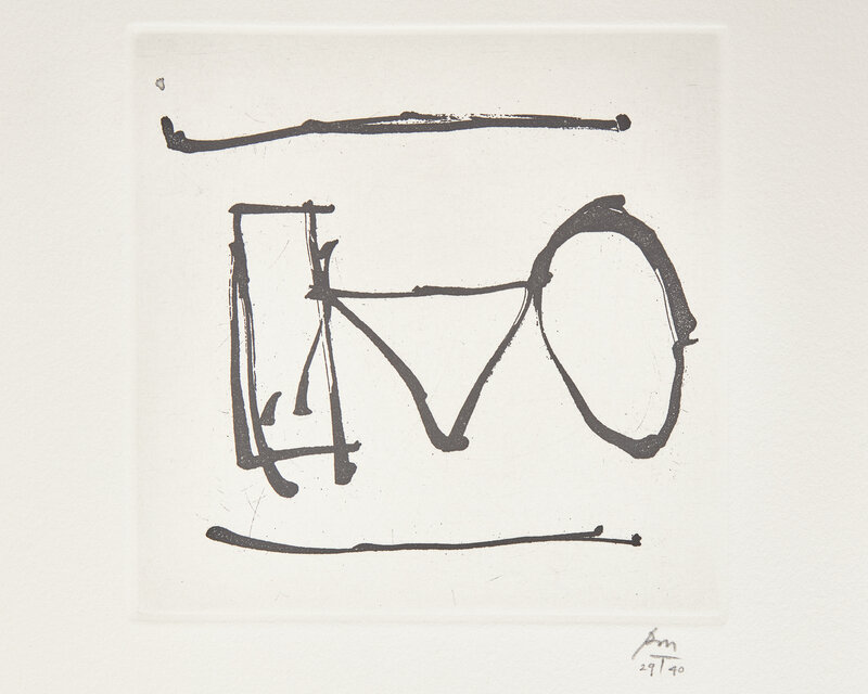 San Francisco: The Arion Press, 1988. Limited edition, #29/40 numbered copies (from a total of 50). Comprising one letterpress title leaf and 22 etched prints on Johannot paper, each signed and numbered by Robert Motherwell. Plates prepared by Catherine Mosley and printed by Robert Townsend. Loose as issued and laid into original printed paper wrapper; in original white-flecked cobalt blue fall-down-back box, spine faded. Original printed prospectus laid in.