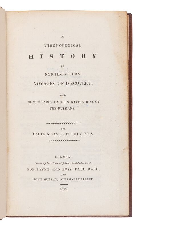 [Travel & Exploration] Burney, Captain James. A Chronological History of North-Eastern Voyages of Discovery; and of the Early Eastern Navigations of The Russians