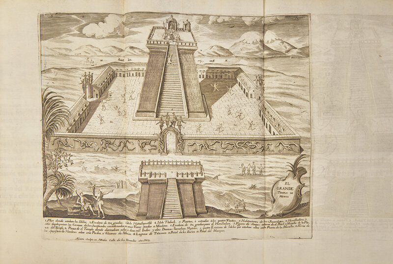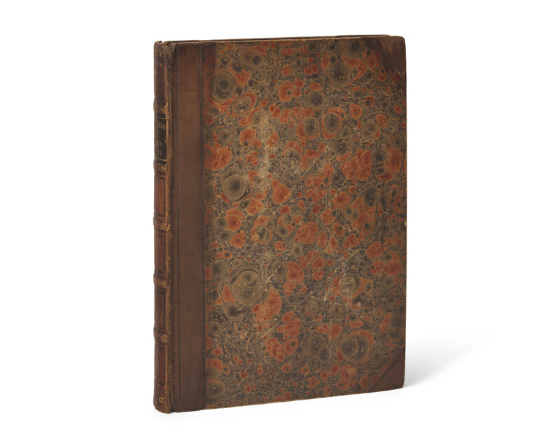 Mexico City: Imprenta del Superior Gobierno, del Br. D. Joseph Antonio da Hogal, 1770. First edition. 4to. (xx), xvi, 176, (2), 177-400, (18) pp. Title-page printed in red and in black, and with an engraved vignette. Illustrated with an engraved frontispiece and 35 engraved plates (three folding, including two maps). Three-quarter brown calf over marbled paper-covered boards, brown morocco spine label, stamped in blind and in gilt, boards and extremities rubbed and lightly worn; top edge stained dark, other edges speckled red; light scattered spotting to text. Hill, pp. 66-69; Sabin 42065; Wagner, The Spanish Southwest 152