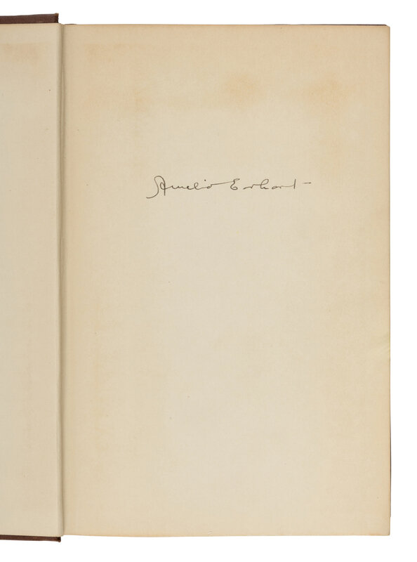 New York: Brewer, Warren & Putnam, 1932. Second Printing. Signed by Earhart on front free endpaper. 8vo. Original brown cloth, sunning to spine, one-inch vertical tear at head of spine.