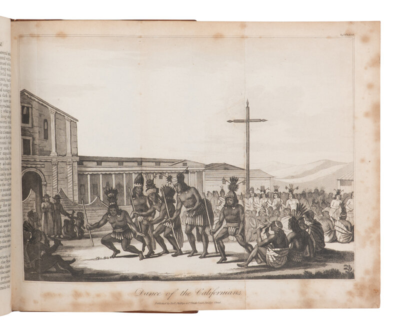 London: Richard Phillips, 1821. Two parts in one volume. 8vo. Illustrated with 14 (of 15) plates and maps (including six folding, and four hand-colored of Indigenous leaders). 20th century half morocco, sunning to spine, some rubbing along extremities; top edge gilt; spotting throughout; offsetting. Forbes 529; Hill 945; Howes K258; Sabin 38292