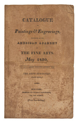 Lot includes a copy of the Catalogue of Paintings & Engravings Exhibited by the American Academy of the Fine Arts. May 1820...The Sixth Exhibition. Second edition. Original limp self-wrappers; toned and foxed.