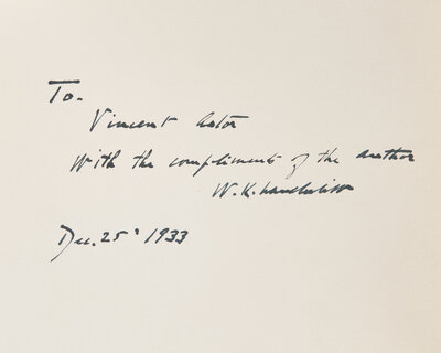 A fine presentation copy of this deluxe issue, chronicling William K. Vanderbilt II's (1878-1944) voyage to the South Seas aboard his yacht, the Alva. Inscribed to Vincent Astor (1891-1959), eldest son of business magnate, John Jacob Astor IV.