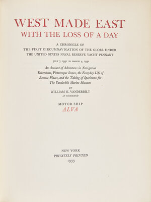 [Americana] Vanderbilt, William K. West Made East With The Loss of a Day A Chronicle of the First Circumnavigation of the Globe Under the United States Naval Reserve Yacht Pennant...