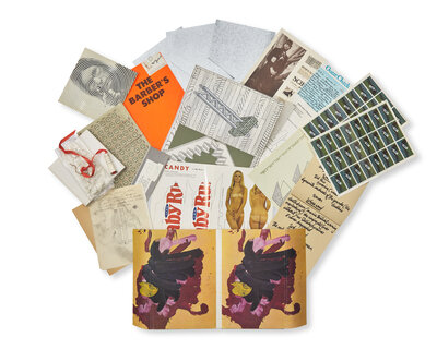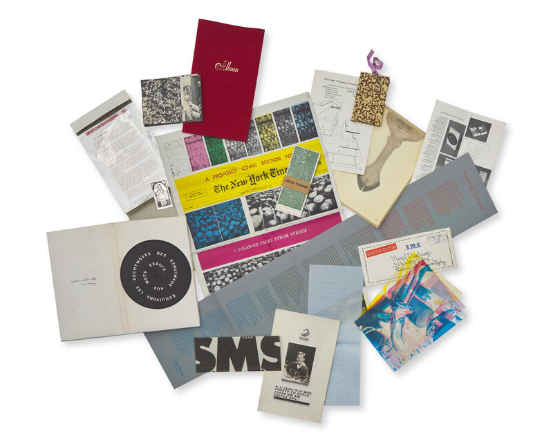 Born out of the neo-dada, Fluxus, and conceptual art circles of New York in the 1960’s, S.M.S. (Shit Must Stop), was a short-lived collaboration between some of the 20th century’s most innovative artists. Undertaken from the collective studio of artist William Copley, S.M.S. sought to circumvent the institutional frameworks of the gallery and museum by providing a direct artist-to-subscriber exchange and experience. Utilizing a wide variety of inventive objects and formats, including records, die-cuts, photographs, sheet music, stamps, and more, these highly inventive portfolios are at times wildly humorous and deeply subversive.
