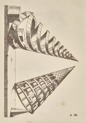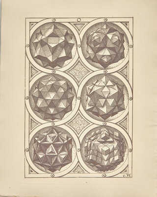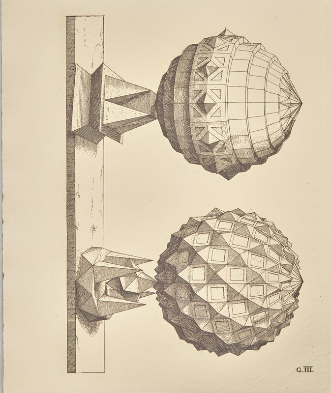 A fine copy of this very rare facsimile edition of German goldsmith Wenzel Jamnitzer's 1568 treatise on perspective, Perspectiva Corporum Regularium. Jamnitzer based his treatise on Euclid's Elements, as well as Plato's five solids, or "regular bodies": the tetrahedron, cube, octahedron, dodecahedron, and icosahedron, with the sections of the book consisting of strikingly engraved images of polyhedral variants, faithfully reproduced here by Swiss engraver Jost Amman.