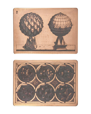 Paris: Alain Brieux, 1964. Deluxe limited facsimile edition, #16/25 numbered copies (from a total of 150). Folio. Illustrated with 55 etched facsimile plates from Jamnitzer's 1568 first edition, 19 phototype facsimile plates of Jamnitzer's original drawings held in the Kupferstichkabinett Berlin, plus an additional suite of etched facsimile plates on old paper, as well as two copperplates used in the production of this facsimile edition (for plates C. VI and G. III). Plates and gatherings loose as issued in publisher's faux vellum-covered chemise, stamped in gilt; in original drab cloth-covered slip case and chemise.