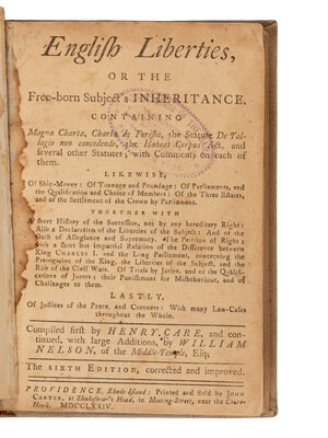 [American Revolution] Care, Henry, and William Nelson. English Liberties, or The Free-born Subject's Inheritance...