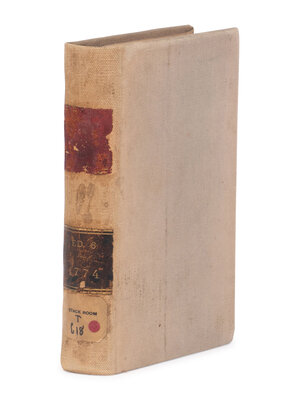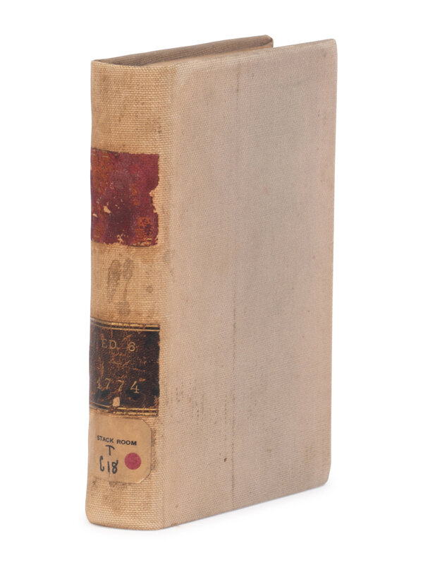 Providence, Rhode Island: John Carter, 1774. The Sixth Edition, correction and improved (second American edition). 8vo. 19th-century library cloth, soiling; minor soiling throughout; marginal soiling in prelim gutters; front free endpaper disbound; pages trimmed to margins. Provenance: City of New York Association of the Bar Library (institutional stamp to title-page). Bailyn 44n; Church 880; ESTC W31881; Evans 13185; Harvard Law Catalogue 335; Sabin 10819; Sowerby 2702-3; Sweet & Maxwell I:154-5; Viorst, Great Documents of Western Civilization 112