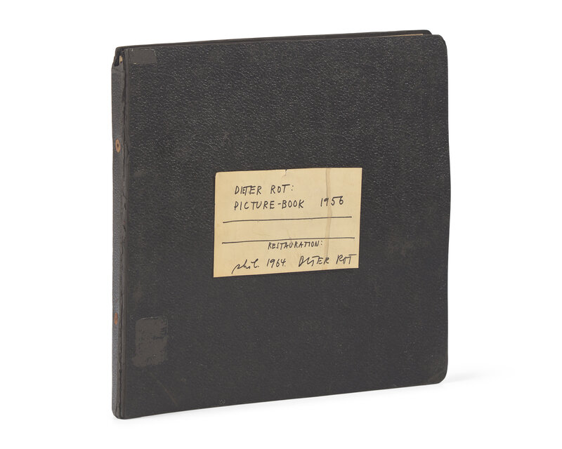 No place, 1956. Square 4to. Comprising 16 sheets of multi-colored plastic and white card sheets, each with hand-cut squares in varying sizes and configurations. In black spiral bound card binder, front board with autograph card, signed by Roth: "Dieter Rot: Picture-Book 1956 Restauration: phil. 1964. Dieter Rot"; wear along joints, small loss at head of spine, small abrasion in lower left of front board from now removed label; blank label on inner front board; rear blank leaf loose; in archival box.