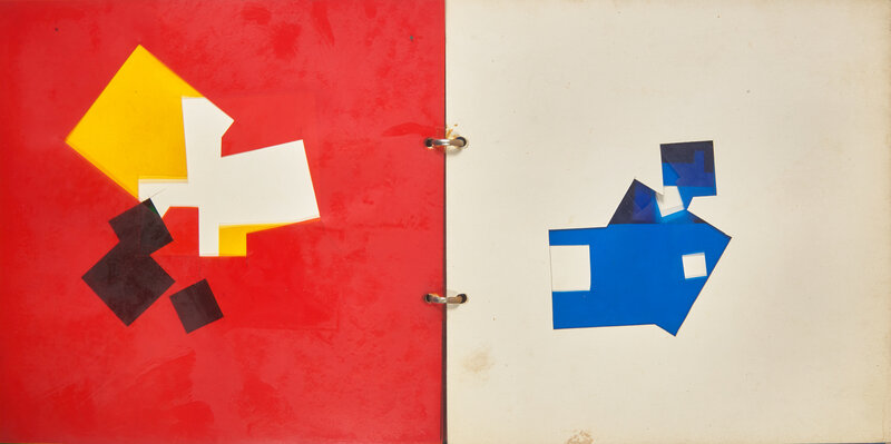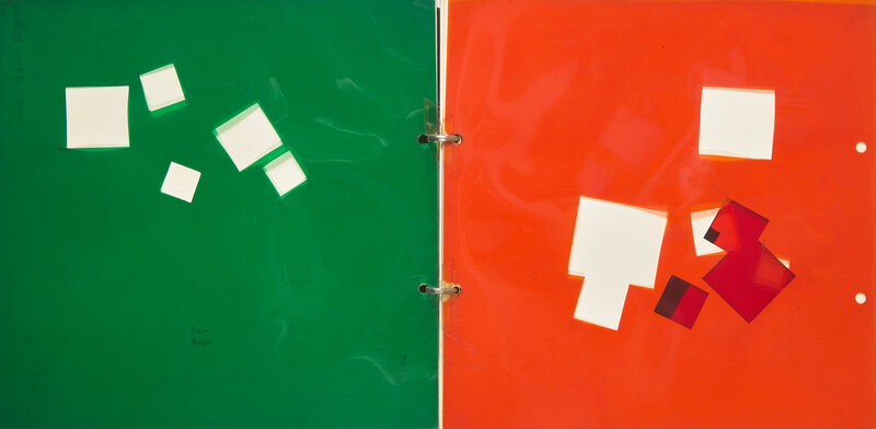 An early and unique artist's book by Swiss artist Dieter Roth. In 16 multi-colored plastic and card sheets, Roth experiments with hand-cut squares in varying sizes and configurations, building a optically complex and layered Constructivist-style work.