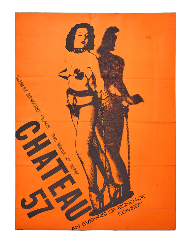 An original poster by performance artist and East Village icon Jon Sex (1956-90), advertising an "Evening of Bondage Comedy" at legendary East Village nightclub, performance space, and exhibition hall, Club 57, on Saturday March 27, 1982.