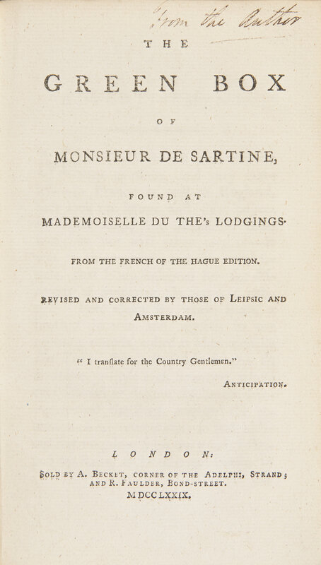 [American Revolution] [Franklin, Benjamin] (Tickell, Richard). The Green Box of Monsieur de Sartine, Found at Mademoiselle du The's Lodgings...