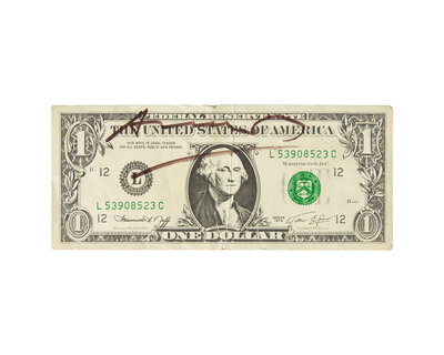 [Art] Warhol, Andy. Signed Miniature Facsimile One Dollar Bill