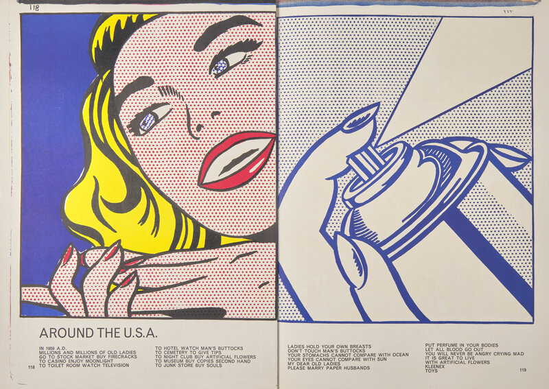 Featuring illustrations by Andy Warhol, Roy Lichtenstein, Robert Rauschenberg, James Rosenquist, Sam Francis, Alfred Leslie, Robert Indiana, Karel Appel, Joan Mitchell, Allan Kaprow, Claes Oldenburg, Jim Dine, Mel Ramos, and others.